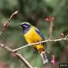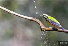 橙腹叶鹎体形大小和金额叶鹎相似,体长16~20厘米。额至后颈黄绿色,其余上体绿色,小覆羽亮钴蓝色,形成明显的肩斑。颏、喉、上胸黑色具钴蓝色髭纹,其余下体橙色。飞羽和尾羽雄鸟黑色、雌鸟绿色。…全部>>