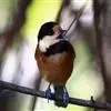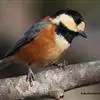 杂色山雀,是山雀科山雀属的一种动物。体重17-18克,体长125-140毫米。雌雄羽色相似。额、眼先、耳羽至颈侧乳黄色,头顶至后颈黑色,后头中央有一白斑。上背栗色,上体余部及翼蓝灰色。颏、喉黑色,…全部>>