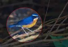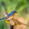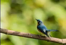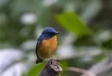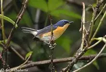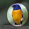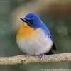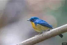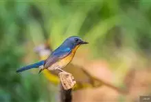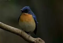 山蓝仙鹟:小型鸟类,体长13-15厘米。雄鸟额基和眼先黑色,颏橙棕色,仅颏尖为蓝黑色,喉、胸、上腹和两胁亦为橙棕色,下体白色范围较小,仅局限于下腹和尾下覆羽。雌鸟上体少黄色,颏、喉、胸概为锈红色,…全部>>