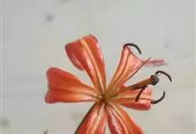 青岛百合是百合科百合属的多年生草本植物;鳞茎近球形;鳞片披针形,白色,无节;叶轮生,矩圆状倒披针形、倒披针形至椭圆形,先端急尖,基部宽楔形,具短柄,两面无毛;苞片叶状,披针形;花橙黄色或橙红色,…全部>>