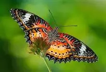 优红蛱蝶:翼展4.5-12厘米。是一种美丽的蝴蝶。色彩鲜艳,花纹相当复杂。前足相当退化,短小无爪。前翅R脉5条,常共柄。卵呈半圆球形。幼虫头上常有突起,体节上有枝刺,腹足趾钩1至3序中列式。蛹为垂蛹。全部>>