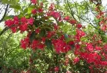 红王子锦带花是忍冬科锦带花属的落叶开张性灌木。株高1 -2米;嫩枝淡红色,老枝灰褐色;单叶对生,呈椭圆形,先端渐尖,叶缘有锯齿,红枝及叶脉具柔毛;花冠漏斗状钟形,花冠筒中部以下变细,聚伞花序,…全部>>