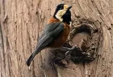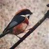 杂色山雀,是山雀科山雀属的一种动物。体重17-18克,体长125-140毫米。雌雄羽色相似。额、眼先、耳羽至颈侧乳黄色,头顶至后颈黑色,后头中央有一白斑。上背栗色,上体余部及翼蓝灰色。颏、喉黑色,…全部>>
