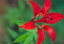 山丹是百合科百合属的多年生草本植物。鳞茎卵形或圆锥形,鳞片长圆形或长卵形,白色;叶散生茎中部,线形,边缘有乳头状突起;花单生或数朵成总状花序,花鲜红色,常无斑点,花被片反卷,…全部>>