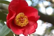 山茶,别名洋茶、茶花、晚山茶等,为山茶科山茶属的一种灌木或小乔木植物。其叶革质,椭圆形,无毛,下面浅绿色,无毛,叶柄无毛;花顶生,红色,无柄;花瓣6-7片,外侧2片近圆形,离生,被毛,…全部>>