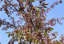 山荆子 Borkh.):为落叶乔木,树高可达4-5米,最高可达10米以上。灰褐色,光滑,不易开裂。新梢黄褐色,无毛。嫩梢绿色微带红褐。叶片椭圆形,先端渐尖,基部楔形,叶缘锯齿细锐。伞形总状花序。花白色,…全部>>