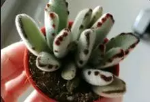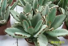 褐斑伽蓝是景天科伽蓝菜属的多年生多肉类植物,茎直立,多分枝,叶生于枝上,肉质叶片匙形,上面密被白色绒毛,下部全缘,叶缘上部有缺刻,缺刻处有深褐或棕色斑块。褐斑伽蓝原产非洲的马达加斯加岛。…全部>>