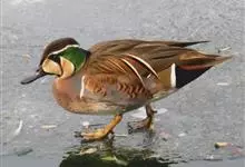 花脸鸭属小型鸭类,个体较绿翅鸭稍大,而较针尾鸭稍小。体长37-44厘米,体重0.5千克左右。雄鸭繁殖羽极为艳丽,特别是脸部由黄、绿、黑、白等多种色彩组成的花斑状极为醒目。胸侧和尾基两侧各有一条垂直白带,…全部>>