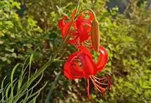 山丹是百合科百合属的多年生草本植物。鳞茎卵形或圆锥形,鳞片长圆形或长卵形,白色;叶散生茎中部,线形,边缘有乳头状突起;花单生或数朵成总状花序,花鲜红色,常无斑点,花被片反卷,…全部>>