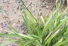 山菅兰 DC.)是阿福花科山菅兰属的多年生草本植物。植株高可达1~2米;根状茎,圆柱状横走;叶狭条状披针形,基部稍收狭成鞘状,套迭或抱茎,边缘和背面中脉具锯齿;顶端圆锥花序,分枝疏散,…全部>>