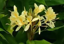 黄姜花:姜科,姜花属多年生草本草本芳香花卉,秋冬季开花,穗状花序,长圆形;苞片长椭圆形,覆瓦状排列,每一苞片内有花3-5朵;花深黄色,形似蝴蝶,气味芬芳纯正,沁人心脾;唇瓣倒心形,黄色,…全部>>