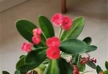铁海棠为大戟科大戟属蔓生灌木植物;茎多分枝,具纵棱,呈旋转状;叶互生,通常集中于嫩枝上;每个花序基部边缘具微小的红色尖头;苞叶先端圆且具小尖头,无柄,上面鲜红色,下面淡红色;苞片丝状;子房光滑无毛,…全部>>