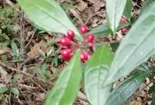 九管血属于矮小灌木,茎匍匐生长,叶片坚纸质,狭卵形或卵状披针形,伞形花序着生于侧生特殊花枝顶端,直径约6毫米的果呈球形,为鲜红色。生长于阴湿之地,…全部>>