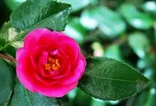 滇山茶:灌木至小乔木,有时高达15米,嫩枝无毛。叶阔椭圆形,上面干后深绿色,发亮,下面深褐色,无毛,侧脉6-7对,边缘有细锯齿。花顶生,红色,直径10厘米,无柄;苞片及萼片10-11片,花瓣红色,…全部>>