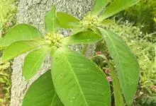 猩猩草:常绿或半常绿灌木,盆栽时株高0.5米-2米,在亚热带地区可长到6米以上。茎直立而光滑,单叶互生,卵状椭圆形至阔披针形,具不规则的深缺刻。长10-15厘米。花小,有蜜腺,排列成密集的伞房花序。…全部>>