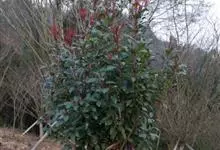 红叶石楠 是蔷薇科,石楠属杂交种,为常绿小乔木或灌木,乔木高可达5米、灌木高可达2米。叶片革质,长圆形至倒卵状、披针形,叶端渐尖,叶基楔形,叶缘有带腺的锯齿,花多而密,复伞房花序,花白色,梨果黄红色,…全部>>