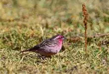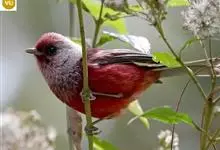 藏朱雀:全长约17-18厘米。雄鸟头部深红色具光辉,喉部暗红色具白色点斑;背部灰白色,各羽具玫瑰红色羽端,形成许多斑纹;腰部淡玫瑰红色;翅暗褐色,沾灰白,羽端沾玫瑰红或灰白色;尾暗棕色,端缘玫瑰红色…全部>>