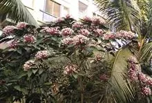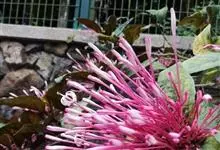 烟火树 Merr.)是唇形科、大青属常绿灌木或小乔木,株高可达4米。幼枝方形,墨绿色。叶对生,长椭圆形或披针形,先端尖,全缘或波状缘。纸质,叶背暗紫红色。聚伞状圆锥花序,顶生,小花多数,聚生成团,…全部>>
