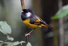 金胸雀鹛是莺科、雀鹛属小型鸟类,体长10-11厘米。头黑色,头顶中央有一道白色中央冠纹,颊和耳羽亦为白色,在黑色的头部极为醒目。上体深灰沾绿。两翅黑色,外侧飞羽有黄色外缘和白色端斑;尾凸状、黑色。…全部>>