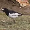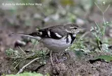 日本鹡鸰:体长约20厘米。上体多黑色,额、颏及眉纹白,下体白,两翼黑而具白色横斑及羽缘,尾黑而边缘白色。虹膜深褐色;嘴黑色;脚黑色。飞行时发出嘁喳声,具复杂而独特的鸣声。喜农田、稻田和溪流。…全部>>