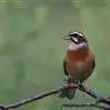 栗斑腹鹀:属小型鸣禽。体重19-25克,体长145-167毫米。头顶至背栗红色,眼先和颧纹黑褐色,黑色颧纹上还有一白纹,耳羽褐色或灰褐色,眉纹白色或灰白色。背、肩具黑色纵纹,腰至尾上覆羽砖红色无纵纹,…全部>>