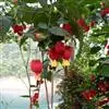 红萼苘麻是锦葵科、苘麻属常绿软木质灌木,叶绿色,长5-10厘米,心形,叶端尖,叶缘有钝锯齿,有时分裂,有细细的叶柄;叶互生,掌状叶脉;花单生于叶腋,具长梗,下垂;花萼红色,半套着大约4厘米长的花瓣,…全部>>
