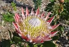 帝王花,山龙眼科帝王花属多年生常绿灌木植;茎干粗壮,叶色翠绿光亮;花朵呈圆球状;其苞片有的完全打开,使花朵呈扁平状;有的则呈半闭合状态,使花朵相对修长,…全部>>