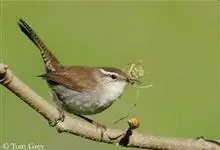 冬鹪鹩:是一种小型鸣禽,原产于北美的冬鹪鹩,传入旧大陆后简称鹪鹩。共有29个亚种,成鸟体长9-10厘米,翼展13-17 厘米,体重8-13克。通体褐或棕褐色,具众多的黑褐色细横斑。飞羽黑褐色,…全部>>