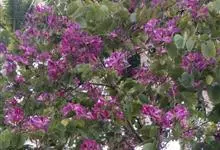 羊蹄甲,别名紫花羊蹄甲、玲甲花,是豆科羊蹄甲属的一种常绿乔木或灌木。树冠开展,枝桠低垂;树皮灰色至暗褐色,近光滑。枝幼时微被灰色短柔毛,后毛脱落;叶硬纸质,近圆形,基部浅心形,…全部>>