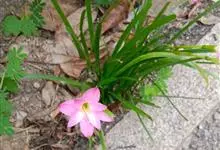 小韭兰学名韭菜莲又名风雨花、菖蒲莲、红玉帘和旱水仙,多年生草本,鳞茎卵球形,基生叶常数枚簇生,线形,扁平,花单生于花茎顶端,下有佛焰苞状总苞,花玫瑰红色或粉红色,蒴果近球形,种子黑色,花期夏秋。韭莲…全部>>