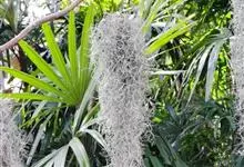 老人须 L.)是凤梨科、铁兰属植物。多年生气生或附生草本植物。植株下垂生长,茎长,纤细,植株长可以达到1-1.5米。叶片互生,半圆形,长3-4厘米,密被银灰色鳞片。小花腋生,黄绿色,花萼紫色,…全部>>