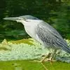 绿鹭:是鹳形目鹭科绿鹭属鸟类。体型小,头顶黑,枕冠亦黑色,上体蝉灰绿色,下体两侧银灰色;前额至后枕及冠羽墨绿色,眼后有一白斑,颊纹黑色;颚纹白色,后颈、颈侧和体侧烟灰色;背部披灰绿色矛状长羽,…全部>>