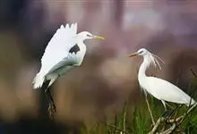 白鹭:白鹭属共有13种鸟类,其中有大白鹭、中白鹭、小白鹭,黄嘴白鹭四种,体羽皆是全白,均称为“白鹭”。这4种白鹭均是中等体型的白色鹭。与牛背鹭的区别在体型较大而纤瘦,嘴及腿黑色,趾黄色,繁殖羽纯白,…全部>>