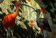 圣鹮头、颈黑色,身体白色,初级和次级飞羽尖端黑色。喙长且厚、黑色下弯,跗蹠与趾黑色。下背部有大量黑色纱状装饰羽,翼下裸露皮肤红色,体侧有时带黄褐色。亚成鸟的头、颈有羽毛,斑驳黑色带有白色纵纹,…全部>>