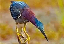 绿鹭:是鹳形目鹭科绿鹭属鸟类。体型小,头顶黑,枕冠亦黑色,上体蝉灰绿色,下体两侧银灰色;前额至后枕及冠羽墨绿色,眼后有一白斑,颊纹黑色;颚纹白色,后颈、颈侧和体侧烟灰色;背部披灰绿色矛状长羽,…全部>>