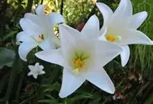 麝香百合:在中国台湾亦称铁炮百合。鳞茎球形或近球形,高2.5-5厘米;鳞片白色。茎高45-90厘米,绿色,基部为淡红色。叶散生,披针形或矩圆状披针形,两面无毛。花单生或2-3朵;花喇叭形,白色,筒外…全部>>