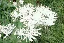 峨眉唐松草,,为唐松草属多年生草本植物,植株无毛。叶片顶端圆形,基部宽楔形,叶柄基部稍变宽成狭鞘,花序圆锥状,萼片白色,花药黄色,花柱比子房稍短。瘦果狭卵球形,无柄,宿存花柱拳卷。7月开花,8月结果。…全部>>