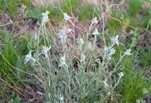 峨眉火绒草是菊科火绒草属植物。根出条细长,稍木质,平卧或斜升,有枯萎宿存的叶和顶生的叶丛,在叶丛上生长花茎。花茎常直立,长5—18厘米,不分枝,被白色棉状密茸毛,全部有叶,节间长1—2.5厘米。…全部>>