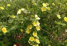 黄木香花 Rehd.)是蔷薇科、蔷薇属植物,为木香花的变型品种,攀缘小灌木,高可达6米。小叶3-5枚,稀7枚,小叶片椭圆形或长圆状披针形,先端急尖或稍钝,基部近圆形或宽楔形,边缘有紧贴细锯齿。花小型,…全部>>