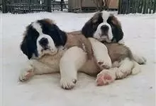 圣伯纳犬,别名巴里汉德,属于大型工作犬,肩高约65~90厘米,体重约50~90千克。圣伯纳犬身体强壮,被毛红褐色和白色相间,头圆而宽大。颈部强壮,胸宽深,背直。前肢长直,腕关节略前倾,后肢腿骨粗壮,…全部>>
