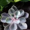 紫珍珠是景天科石莲花属的多年生肉质草本植物。植株中小型;叶片肉质,匙形,呈莲座状紧密排列;叶片粉紫色,叶缘呈粉白色,光照充足时颜色亮丽,不足时叶色会呈现深绿色或灰绿色,叶面光滑,被轻微白粉,…全部>>