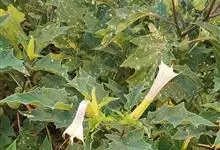 曼陀罗,茄科曼陀罗属一年生大型草本植物,全株光滑。有臭气;叶呈广卯形,边缘具不规则波状浅齿裂;花单生于枝杖间或叶腋,直立,有短梗;花萼是筒状裂片三角形,颜色为白色或淡紫色;果实为蒴果卵状,…全部>>