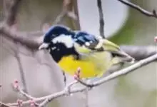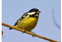 黄腹山雀是雀形目山雀科山雀属鸟类。虹膜褐色或暗褐色;嘴蓝黑色或灰蓝黑色;头、喉胸斑黑色,颊斑、颈后斑白色;上体蓝灰色,腰银白色;翼具两排白色点斑;下胸、腹鲜黄色;尾黑色,…全部>>