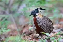 红腹角雉属于鸡形目雉科,雄鸟体羽及两翅主要为深栗红色,满布具黑缘的灰色眼状斑,下体灰斑大而色浅。雌鸟上体灰褐色,下体淡黄色,杂以黑、棕、白斑。全部>>