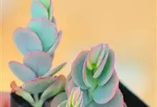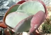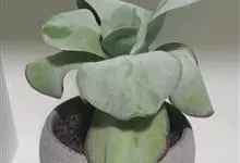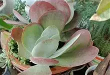 唐印为景天科伽蓝菜属的多年生肉质草本植物。植株中型,株高50厘米,宽20厘米,多分枝;叶片肉质,对生,卵形,全缘,先端钝圆,叶片淡绿色至灰绿色,表面被有厚厚的白粉,光照充足时,叶缘呈红色;圆锥花序,…全部>>