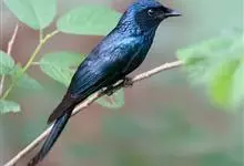 黑卷尾是雀形目卷尾科一属,又称铁练甲、铁燕子、铁林哥、羊蹄刺、榨油郎,体长约30厘米全身蓝黑色而具金属光泽,尾长且分叉较深。幼鸟似成鸟,金属光泽弱,下腹部具近白色的横纹。虹膜暗红色,嘴黑色,脚黑色。…全部>>