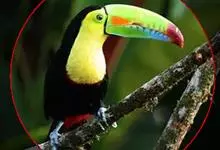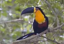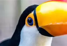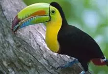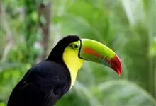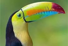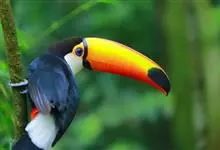 鵎鵼:又名巨嘴鸟。体长约67厘米,嘴巨大,长17~24厘米,宽5~9厘米,形似嘴刀。嘴非常漂亮,上半部黄色,略呈淡绿色,下半部呈蔚蓝色,喙尖点缀着一点殷红。眼睛四周镶嵌着天蓝色羽毛眼圈,胸脯橙黄色,…全部>>