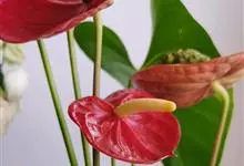 花烛,别名红鹅掌、红掌、安祖花等,为天南星科花烛属的一种多年生草本植物。其茎矮;叶互生,叶片革质,有光泽,阔心形、圆心形,先端钝或渐尖,基部深心形;肉穗花序有细长花序梗,佛焰苞深红色或橘红色,…全部>>