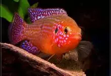 红宝石鱼是鲈行目慈鲷科伴丽鱼属 鱼类,又名红花鲈、宝石鱼。个体较大,身长12—15厘米。背鳍宽大,基部长。体色从下颌至尾鳍,侧线以下均为赤红色,背鳍、臀鳍和尾鳍边缘也为红色,…全部>>