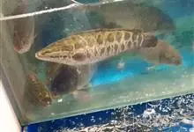乌鳢[wū lǐ],又名黑鱼、财鱼、乌鱼、蛇头鱼,属于鲈形目鳢科鳢属鱼类。成年乌鳢体长大约为40~60厘米,最大长度可达1米;一般体重约为0.5~1千克,最大8~9千克。乌鳢体肥而延长,前部圆筒状,…全部>>